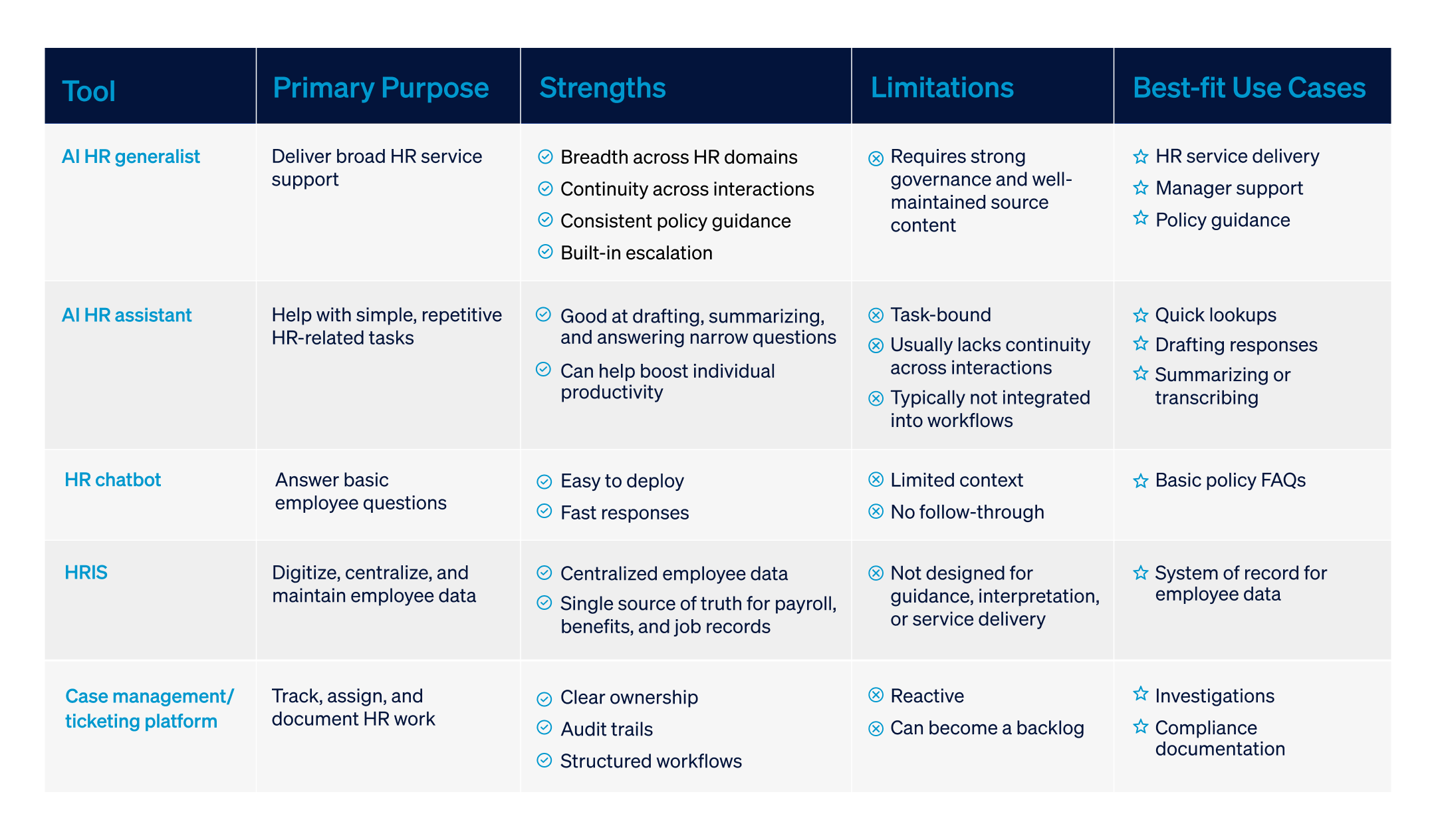 - Role: First point of contact (HR's "front door"); provides triage and coordination